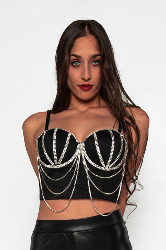Top Mujer Bustier Diamantes de imitación Crop Top Push up Corset fiesta