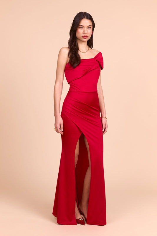 Vestido largo de fiesta manga asimétrica
