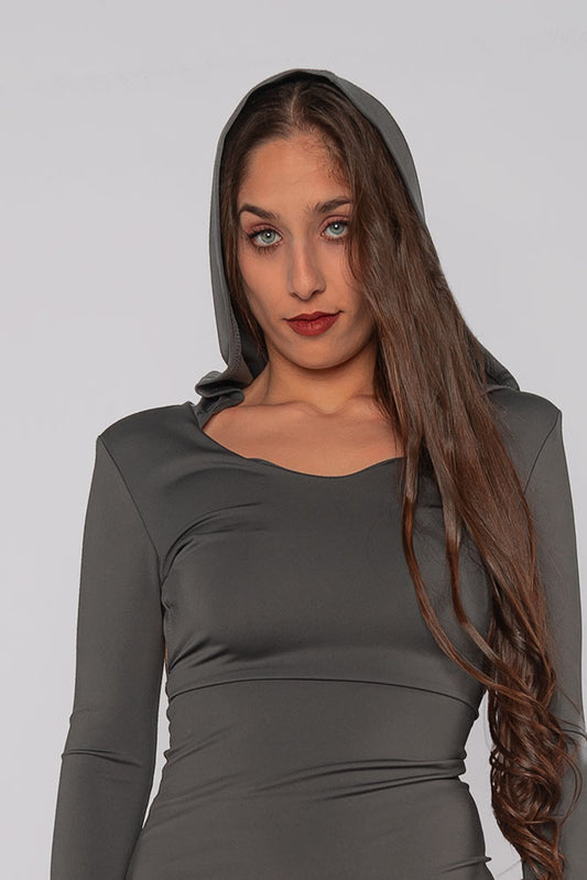 Vestido Con Capucha Sólido, Vestido corto Casual con mangas largas