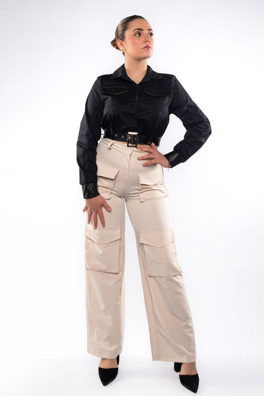 Pantalón Jeans de cuero sintético con diseño de talle alto