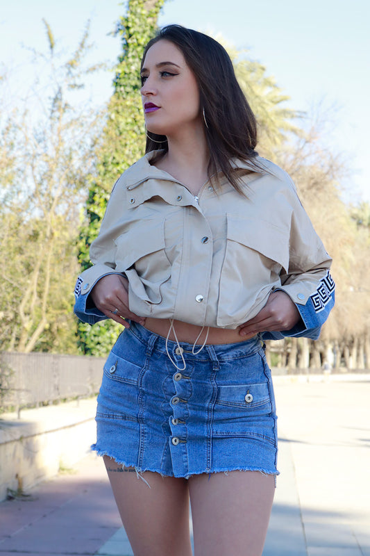 Cazadora biker cuero sintético con cinturon-Jump & Fish